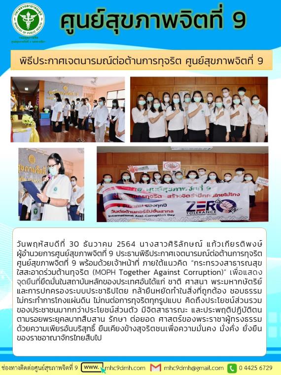 กิจกรรม "ประกาศเจตนารมณ์ต่อต้านการทุจริต" ในวันที่ 29 ธันวาคม 2565