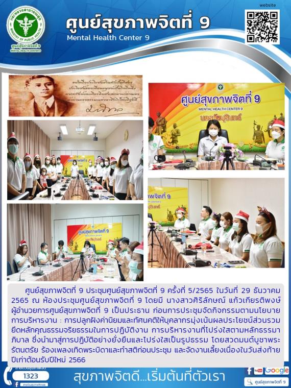 กิจกรรม "ปลูกฝังค่านิยมและทัศนคติบุคลากรในการทำงาน" ในวันที่ 29 ธันวาคม 2565