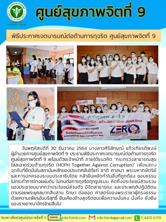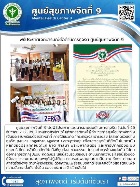 กิจกรรม "ประกาศเจตนารมณ์ต่อต้านการทุจริต" ในวันที่ 29 ธันวาคม 2565